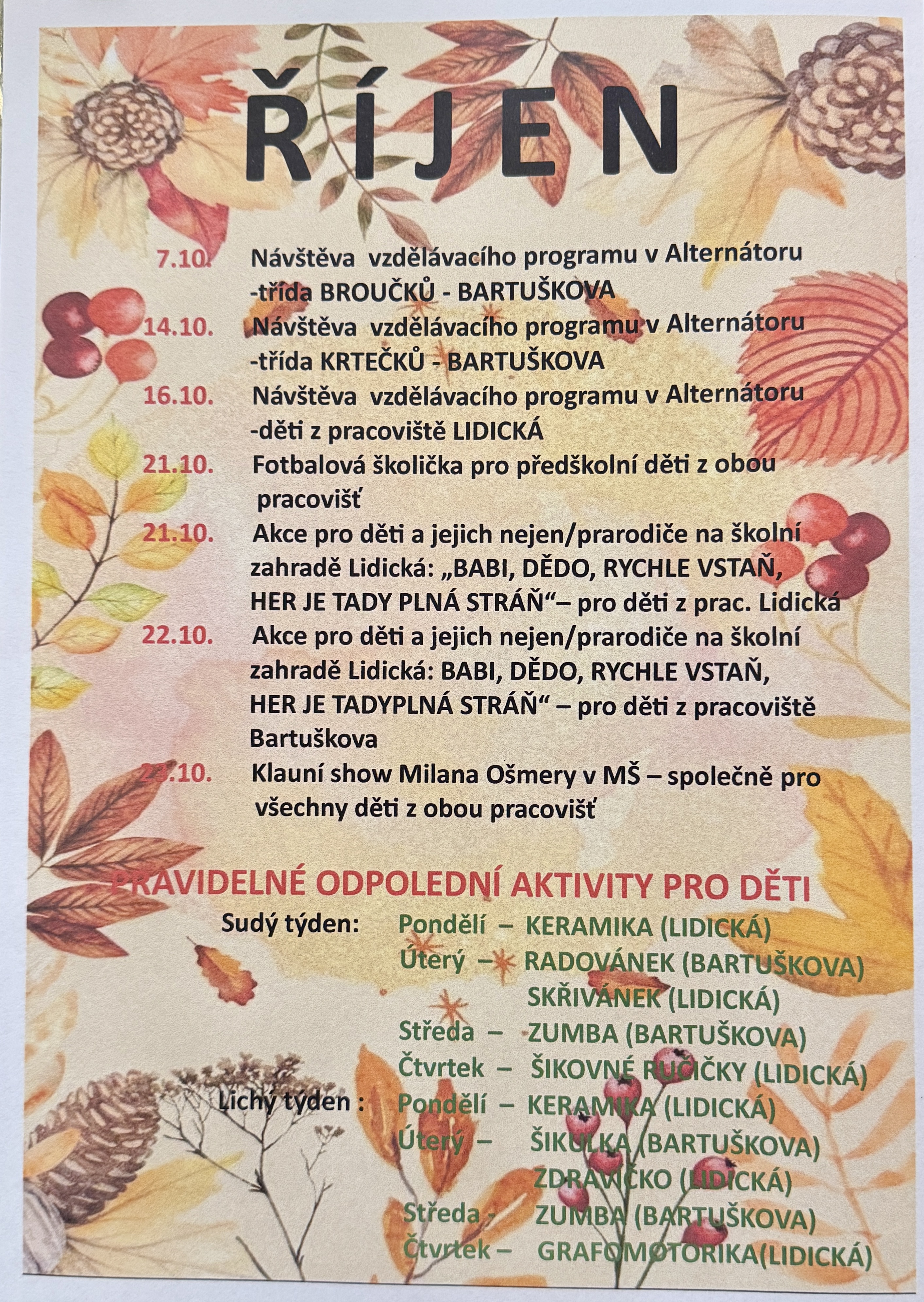 Akce pro děti v měsíci říjnu...