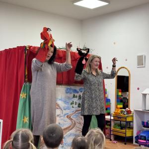 Naši MŠ navštívilo divadélko "Úsměv" se svým zábavně-vzdělávacím programem o prevenci lidského zdraví. Děti byly nenásilně vtaženy do poutavého příběhu a celé představení se jim moc líbilo.
