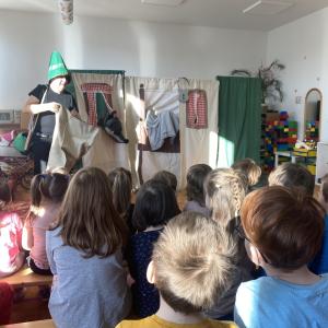 Do školky za námi tentokrát zavítal pan Dejl se svým divadlem, zahráli nám pohádku O Červené Karkulce. O napětí a zábavu nebyla nouze, vlk skončil v pytli a všechno dobře dopadlo. Děti si pak nakreslily pěkné obrázky z tohoto představení.