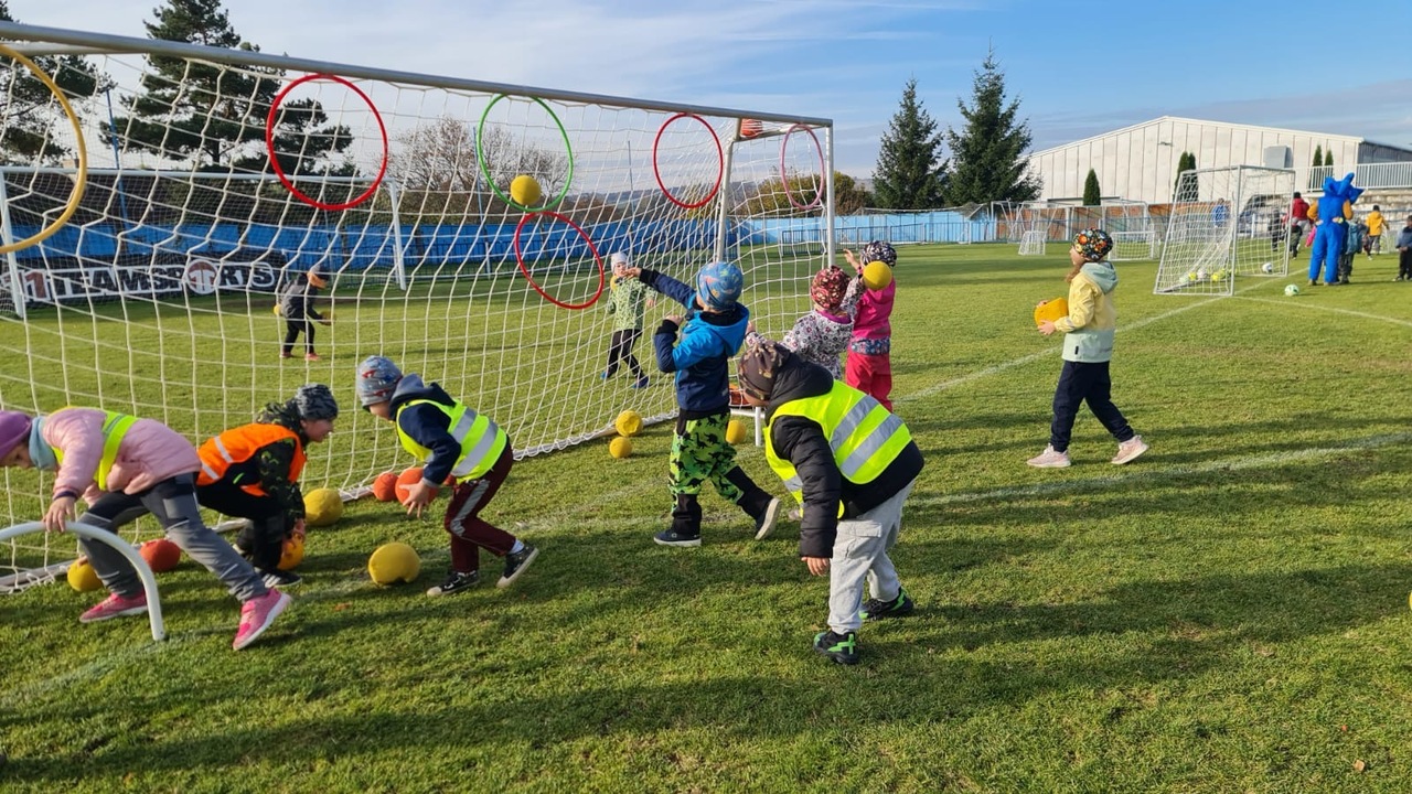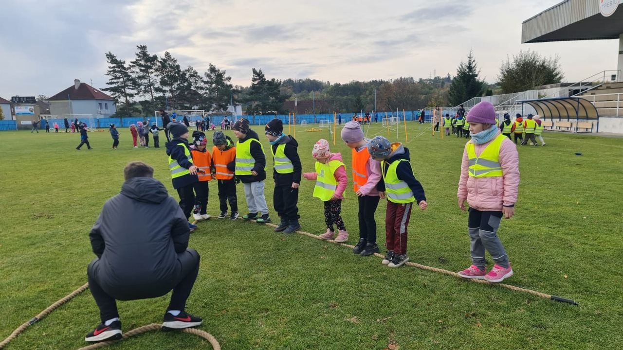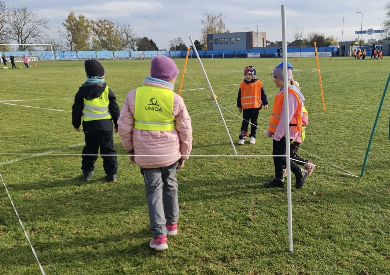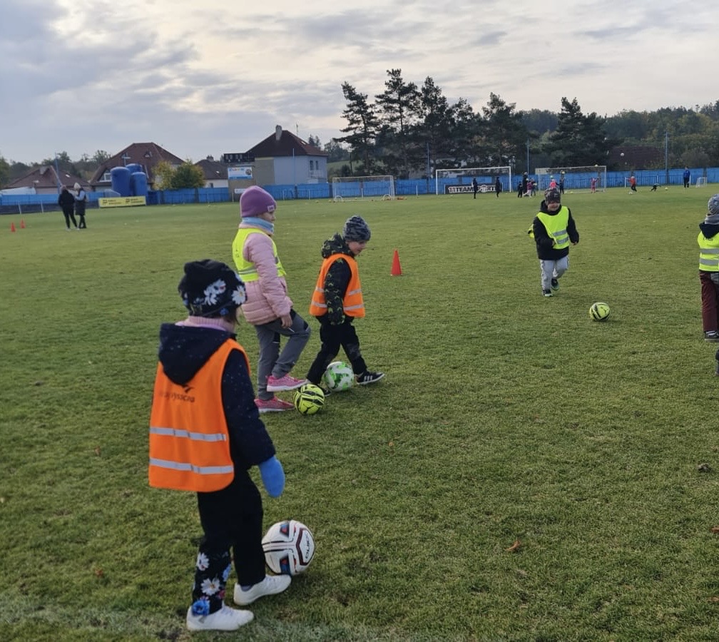 Letos za námi trenéři nepřišli do školky, ale my jsme šli za nimi na opravdové fotbalové hřiště a byl to velký zážitek.