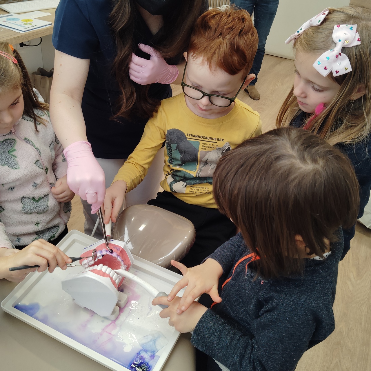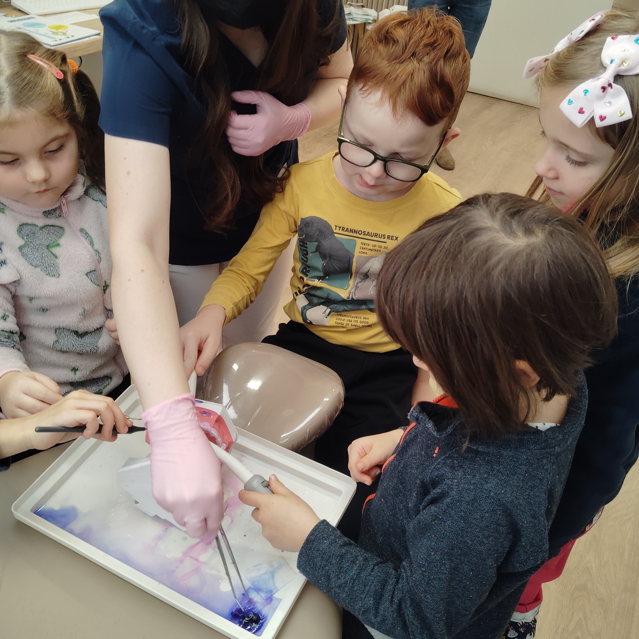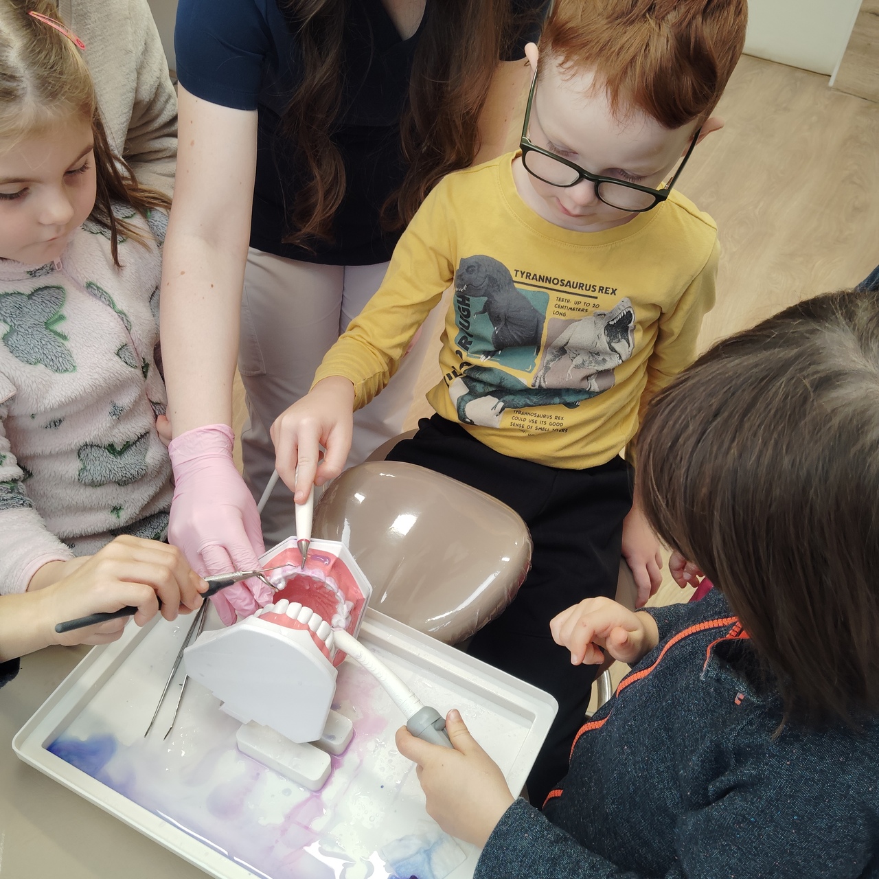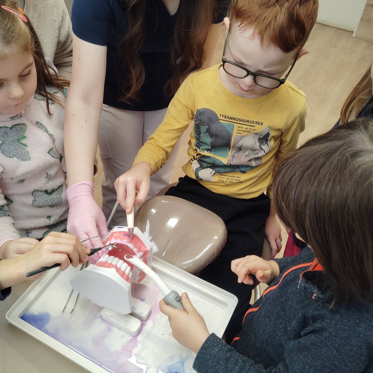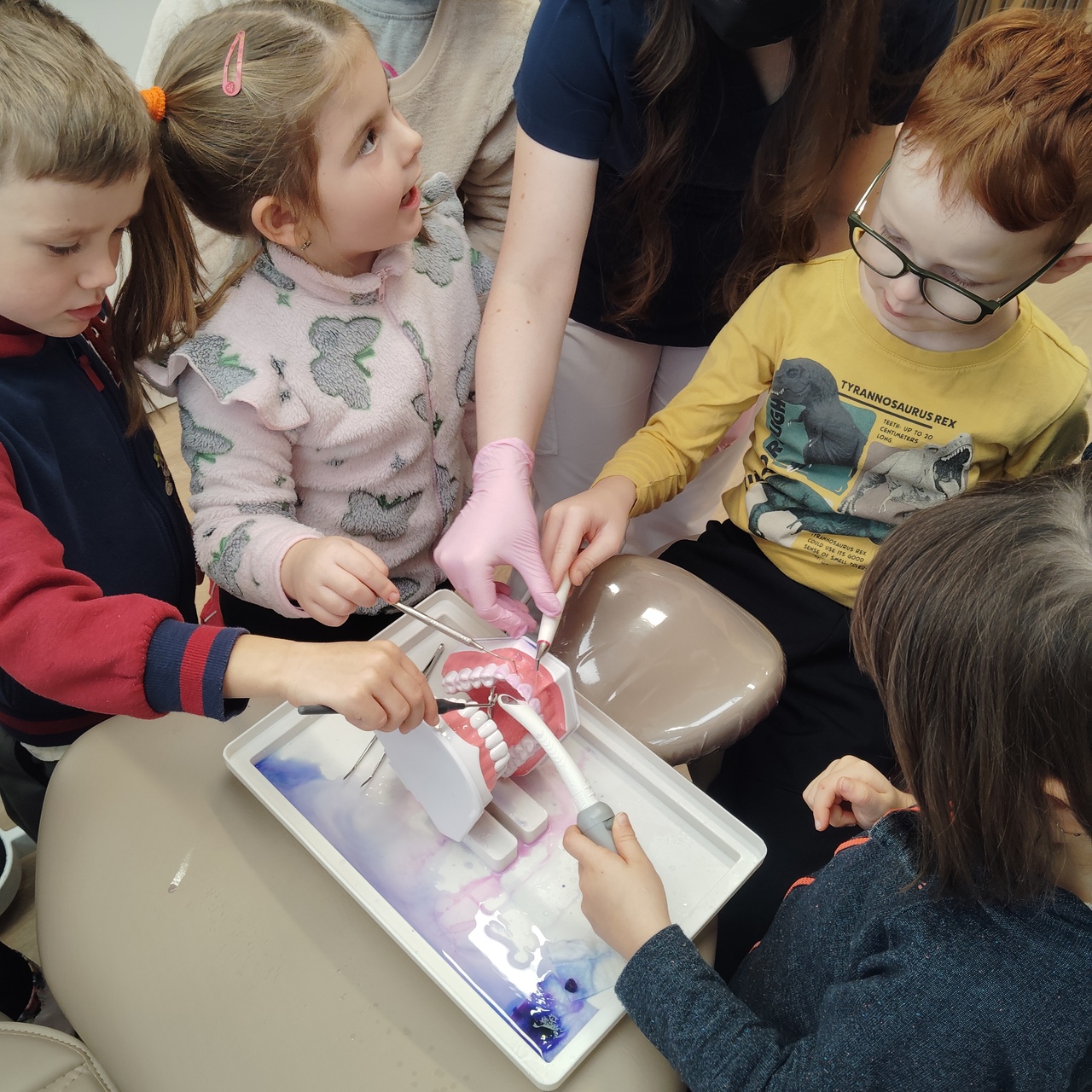 Návštěva v ordinaci dentální hygienistky byla pro děti velkým zážitkem, zábavnou formou se učily, jak správně čistit zuby a plnily i zábavné úkoly. Do školky se vrátily s malým dárkem a plny dojmů.