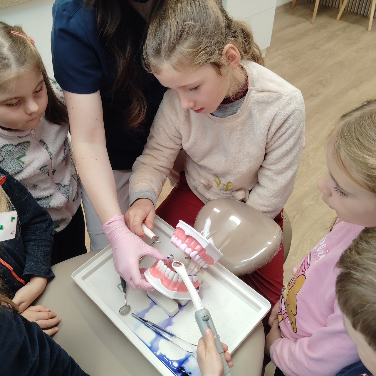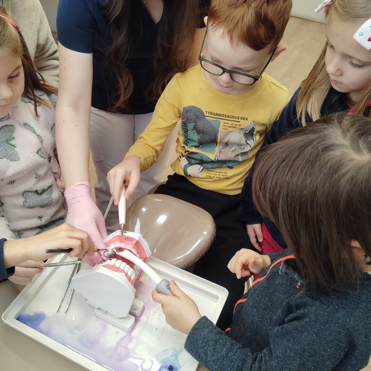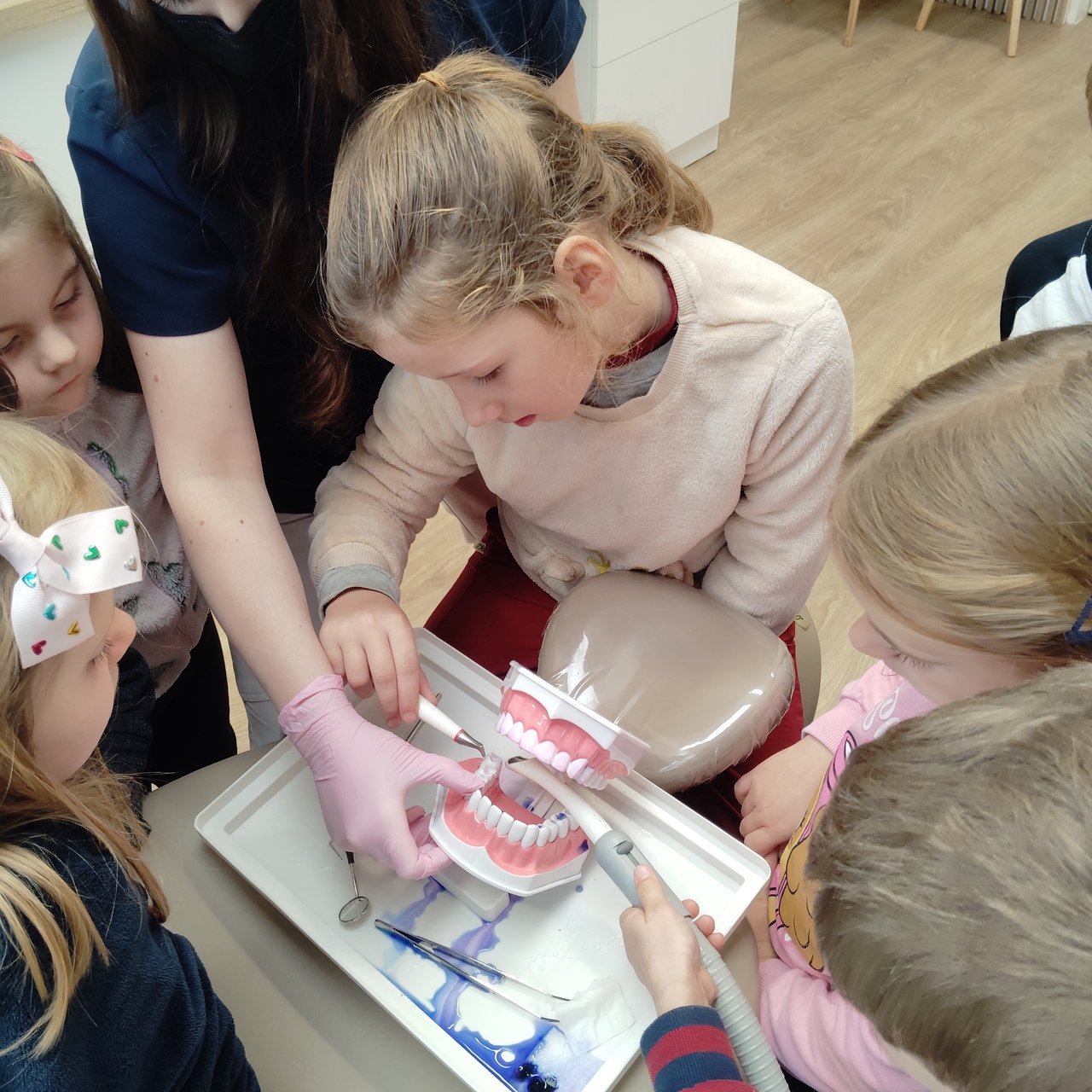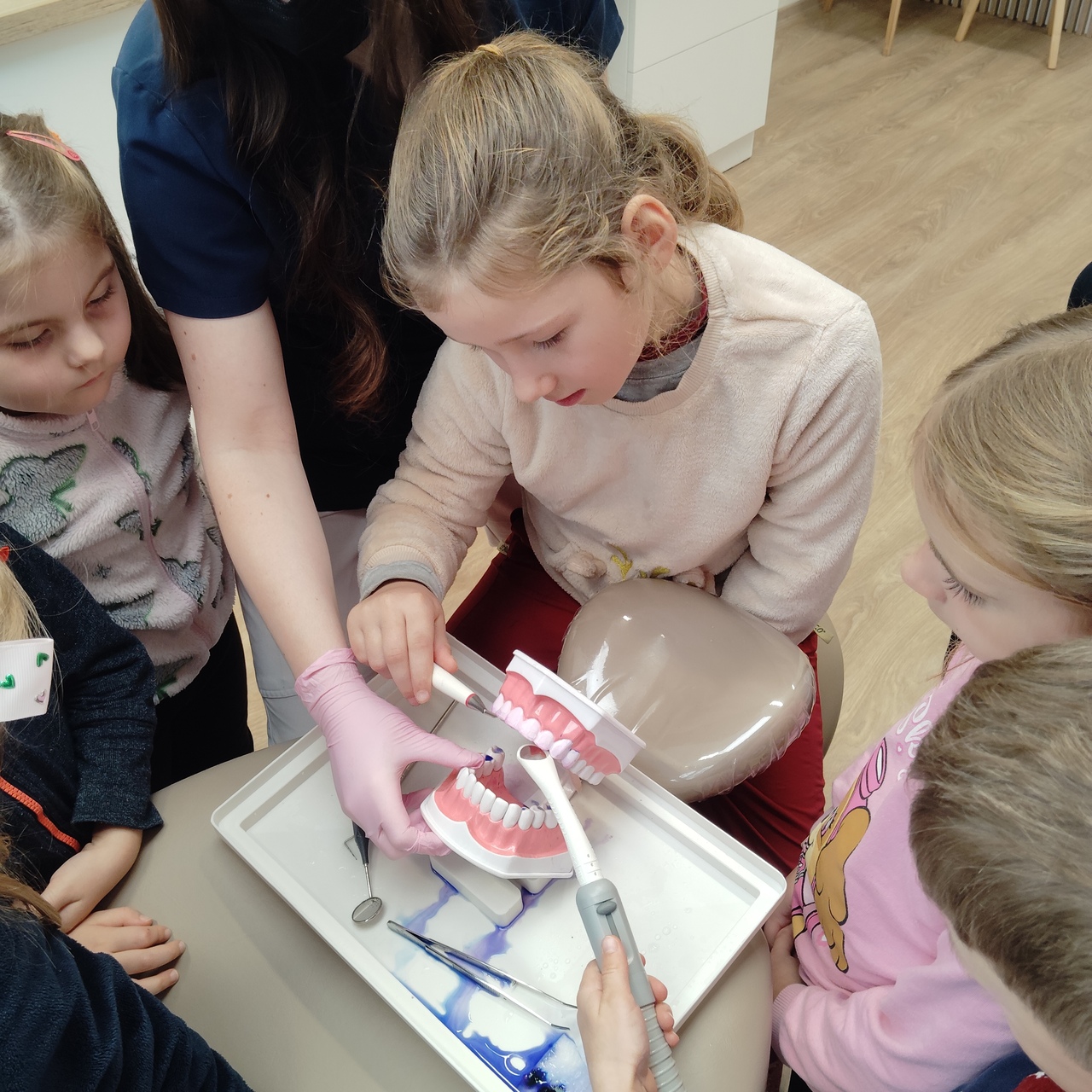Návštěva v ordinaci dentální hygienistky byla pro děti velkým zážitkem, zábavnou formou se učily, jak správně čistit zuby a plnily i zábavné úkoly. Do školky se vrátily s malým dárkem a plny dojmů.