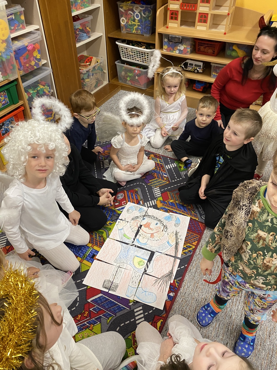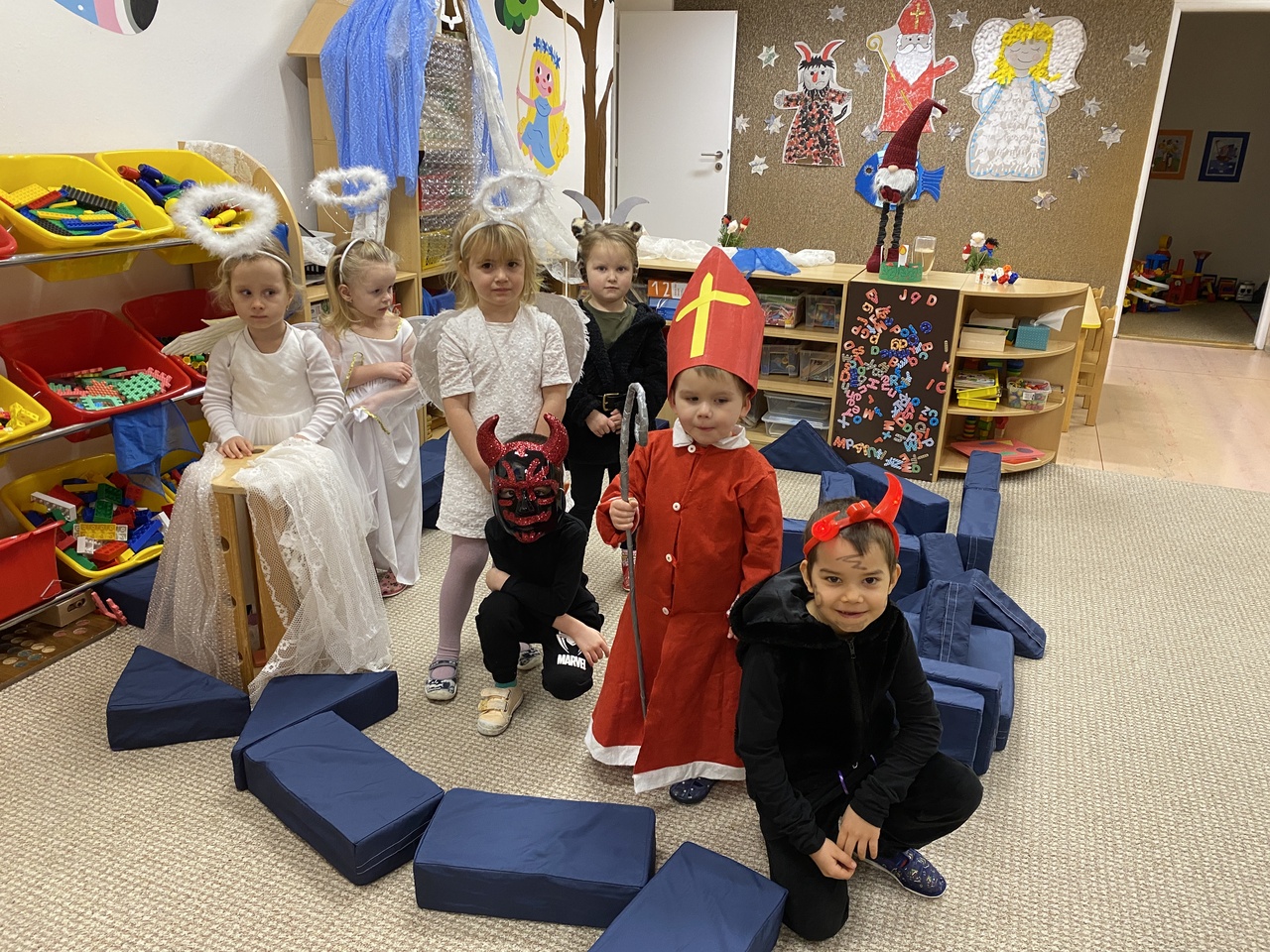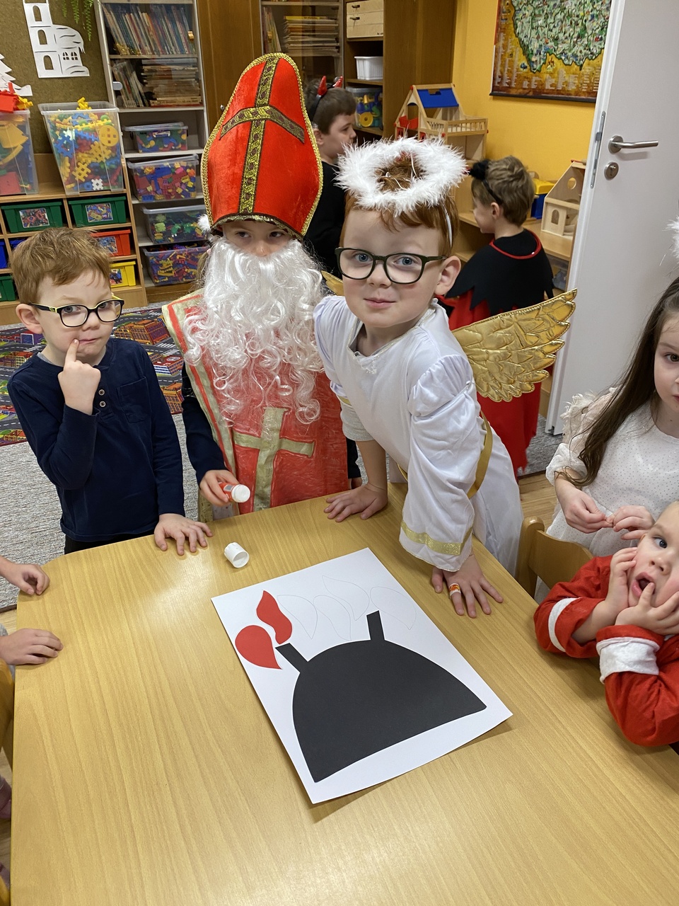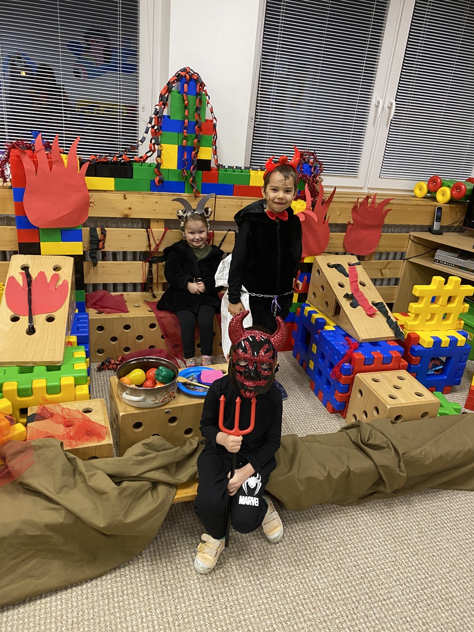Od rána se ve školce scházeli nejen čertíci ale i andělé a dorazili i dva Mikuláši. Školka se proměnila v peklo a nebe, děti plnily různé úkoly a dokonce i svačinka byla čertovská. Nakonec přišel i Mikuláš se svým doprovodem a přinesl dětem nadílku.