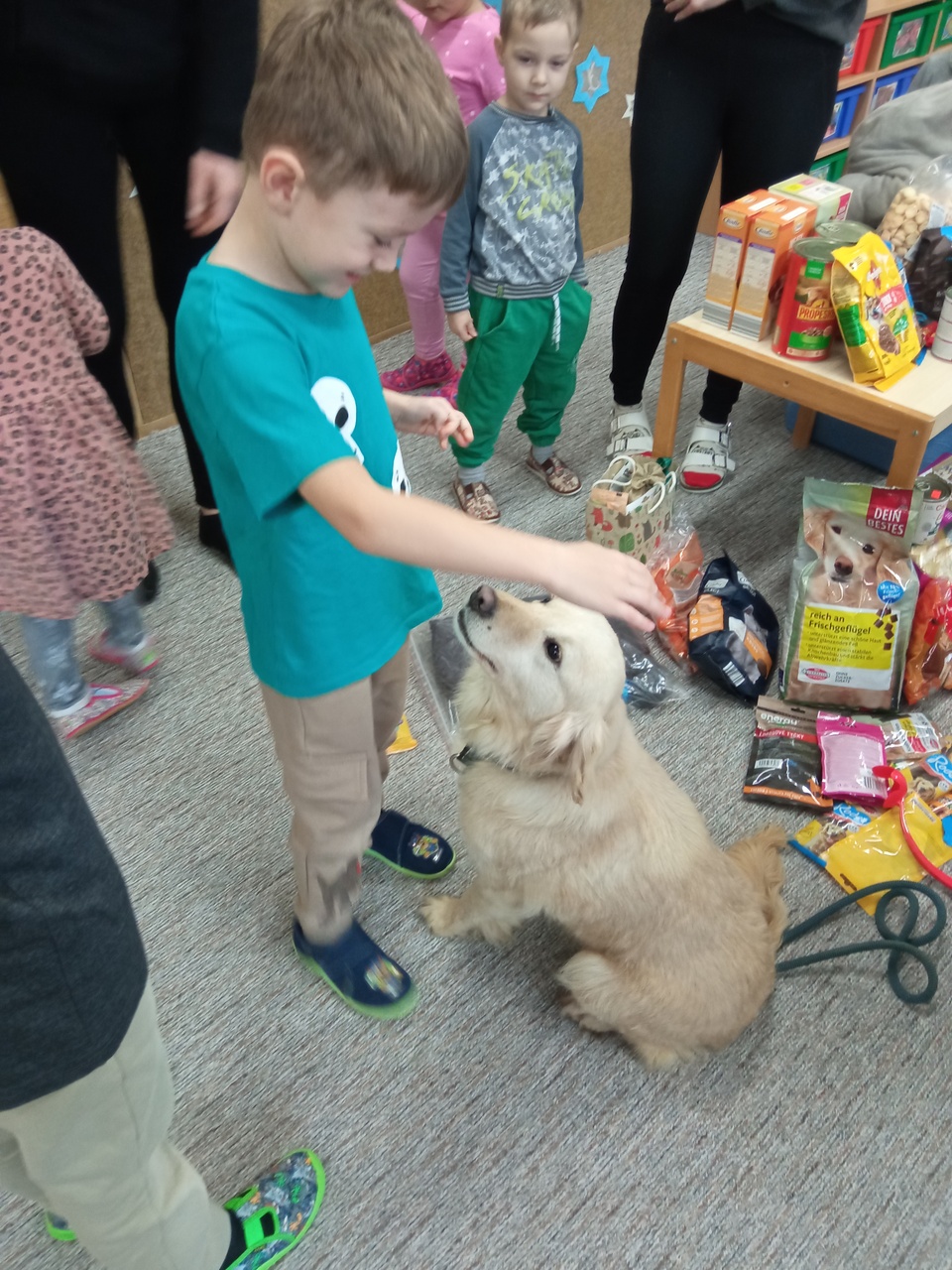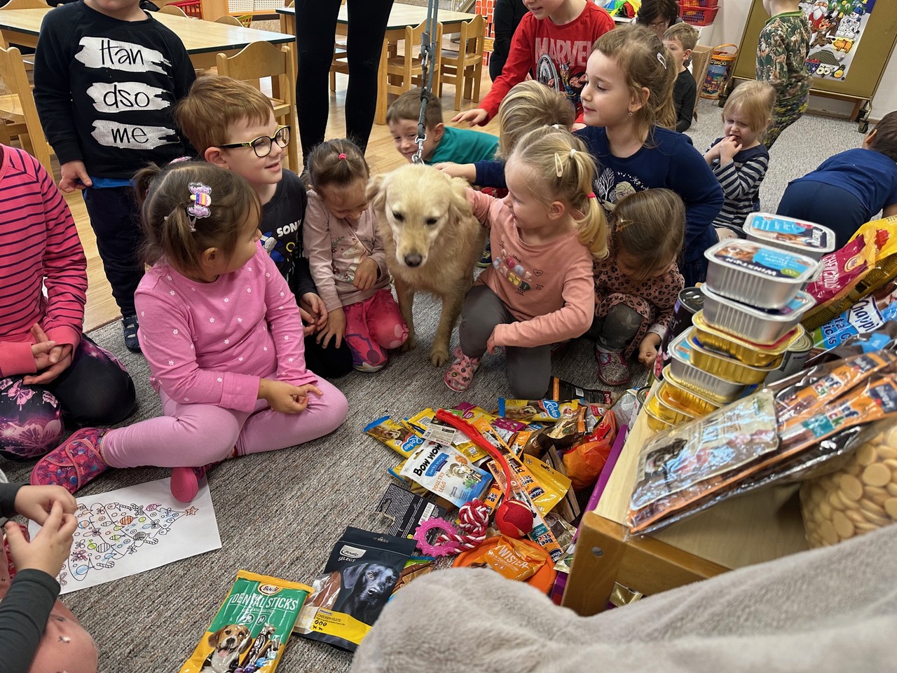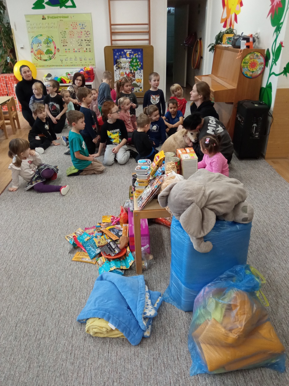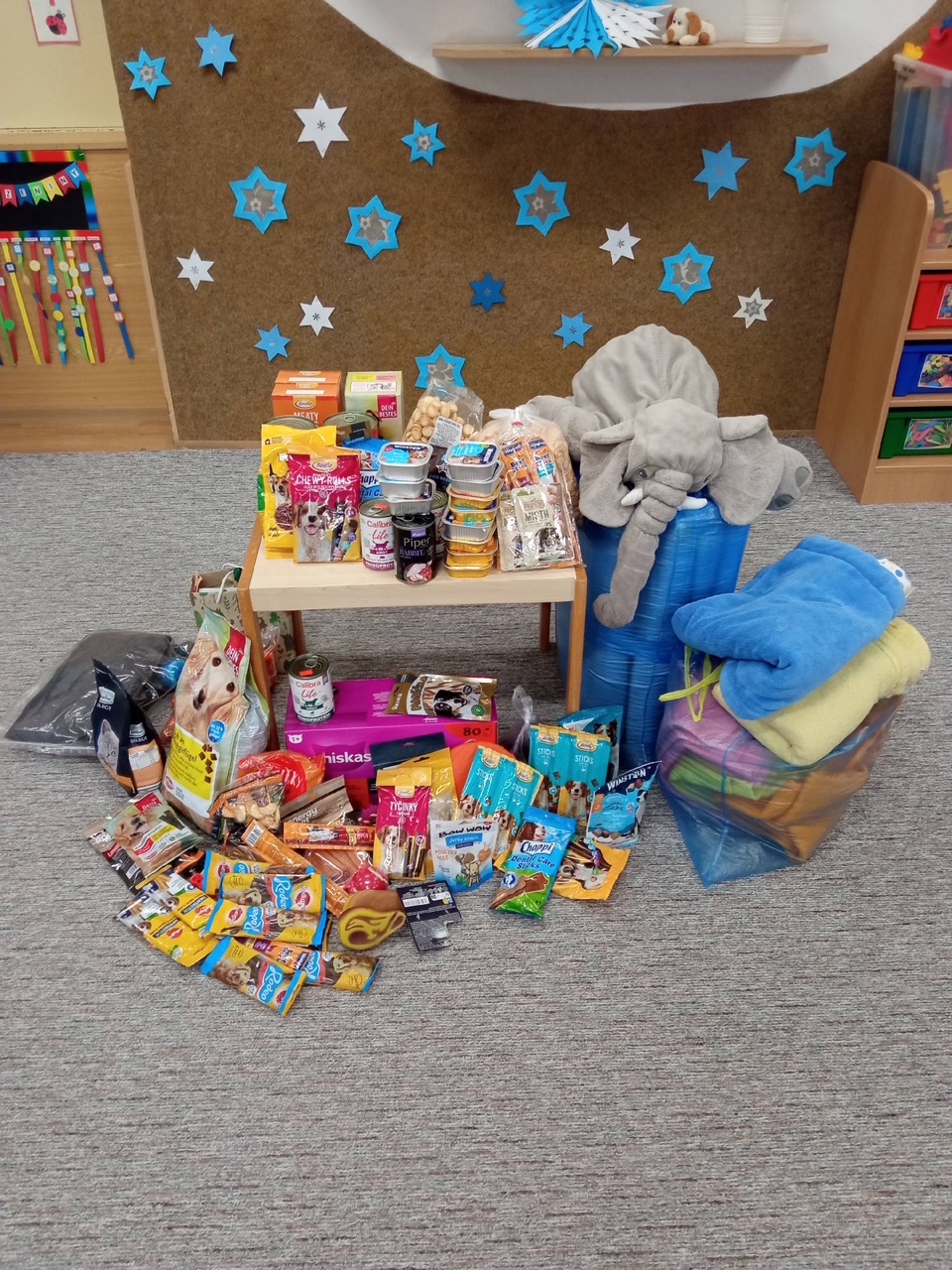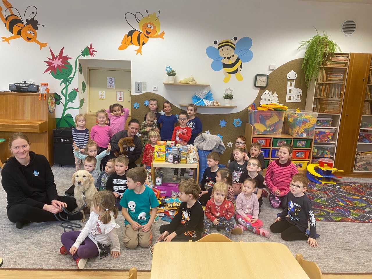 Letos jsme uspořádali sbírku pro útulek Kapka pro tlapky. Rodiče přinesli spoustu dobrot nejen pro pejsky, ale i pro kočičky a koníky. Paní nám vyprávěla o tom, jak to u nich chodí a nakonec došlo i na společné venčení.