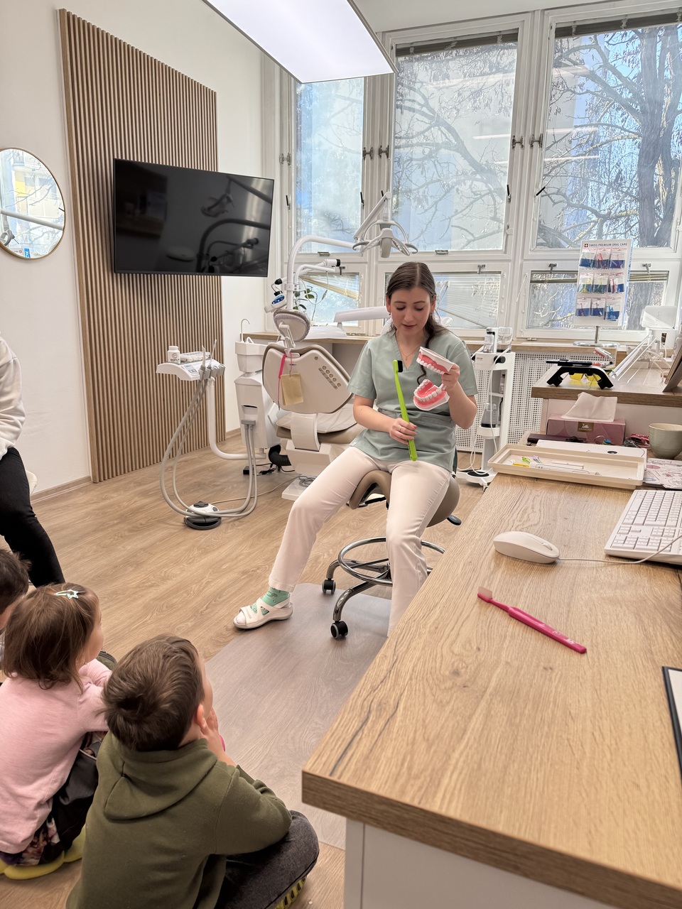 Děti se šly podívat, jak to vypadá v ordinaci zubní preventistky a seznámily se s tím, jak správně dbát o svůj chrup...
